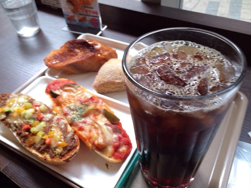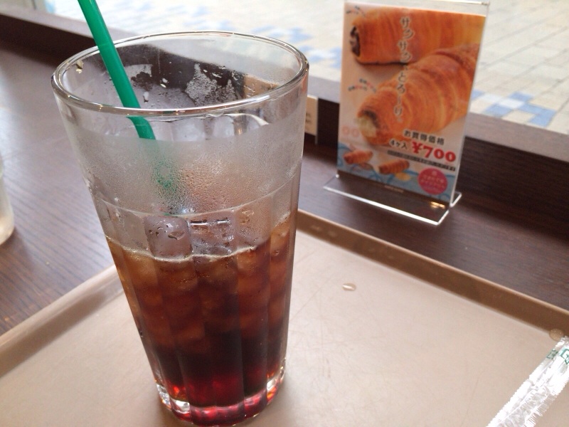 商店街にあるベーカリーカフェ。 巨大アイスコーヒーとともに!! 荒地に川ミュージック