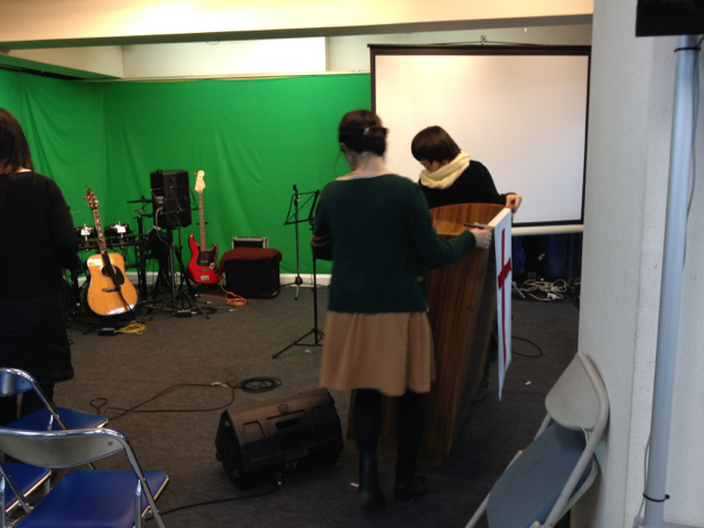 講壇を運ぶ力強い女子お二人です!