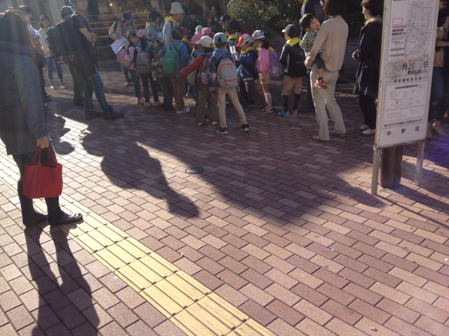 駅前にあつまるちびっ子たち! 秋の遠足でしょうか⁉