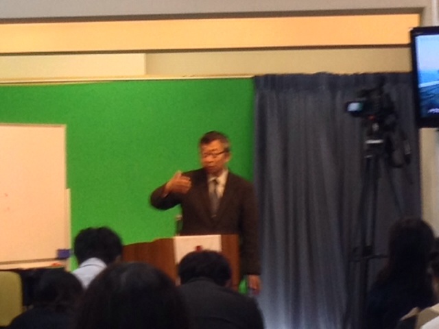 新井先生の使われるマイクセッティングを行っています。