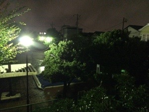 真夜中の窓にあたる雨と強風は、通り過ぎると何もなかったかのように思われます。昨夜の成田発の轟音は比較的少なく(ここはよく聞こえるのです)、欠航便が多いのかと想像しましたが、今日のアメリカチームには影響もないと、確信した朝です。 昨夜の横殴りの雨。船橋D