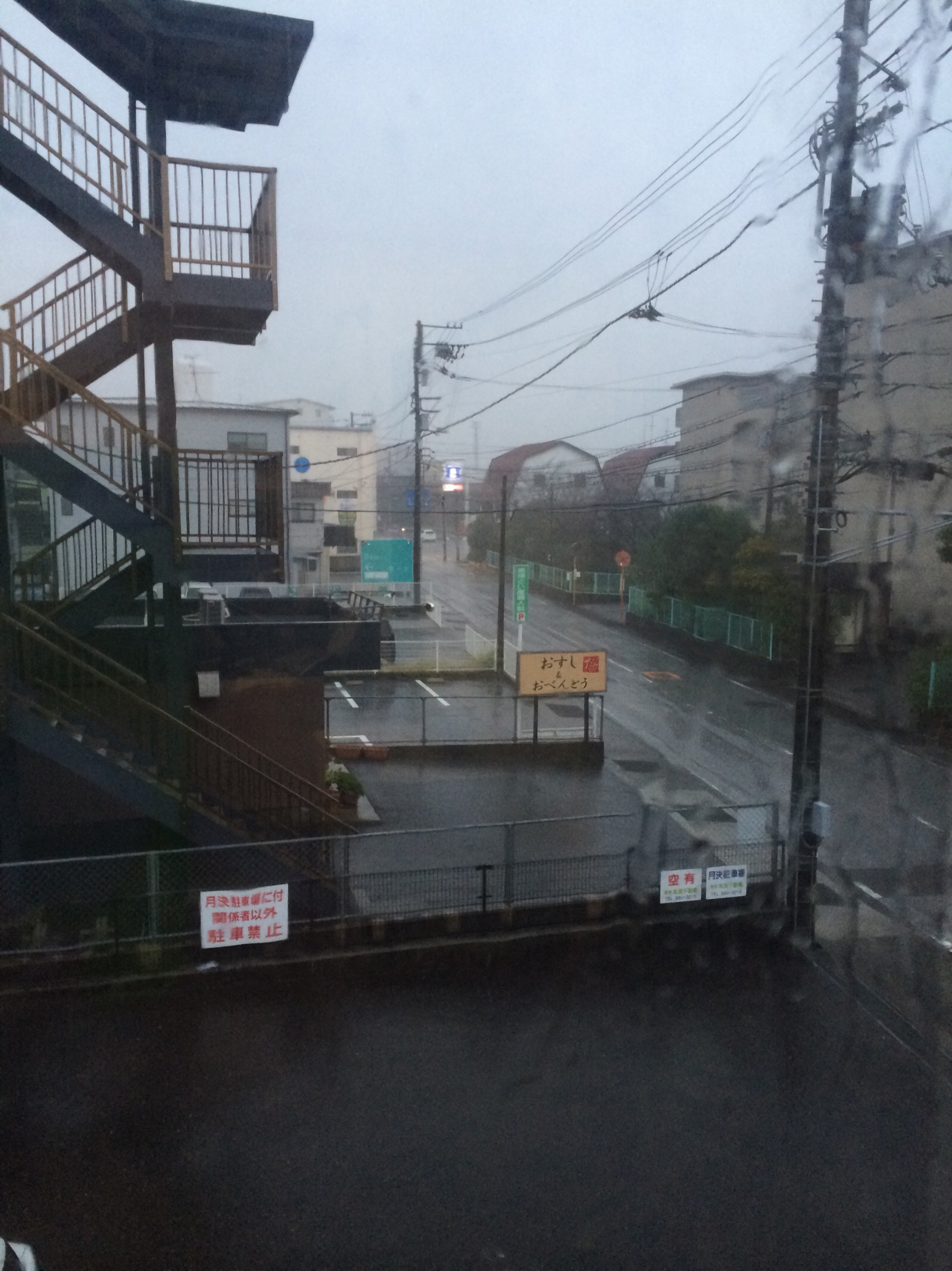 風がうなり声をあげ、雨足も強まっています。 わたしの家は、三方駐車場に囲まれ道路に面した一軒家です。 共にいて下さる主の御翼の影に宿り平安のうちに過ごしています。