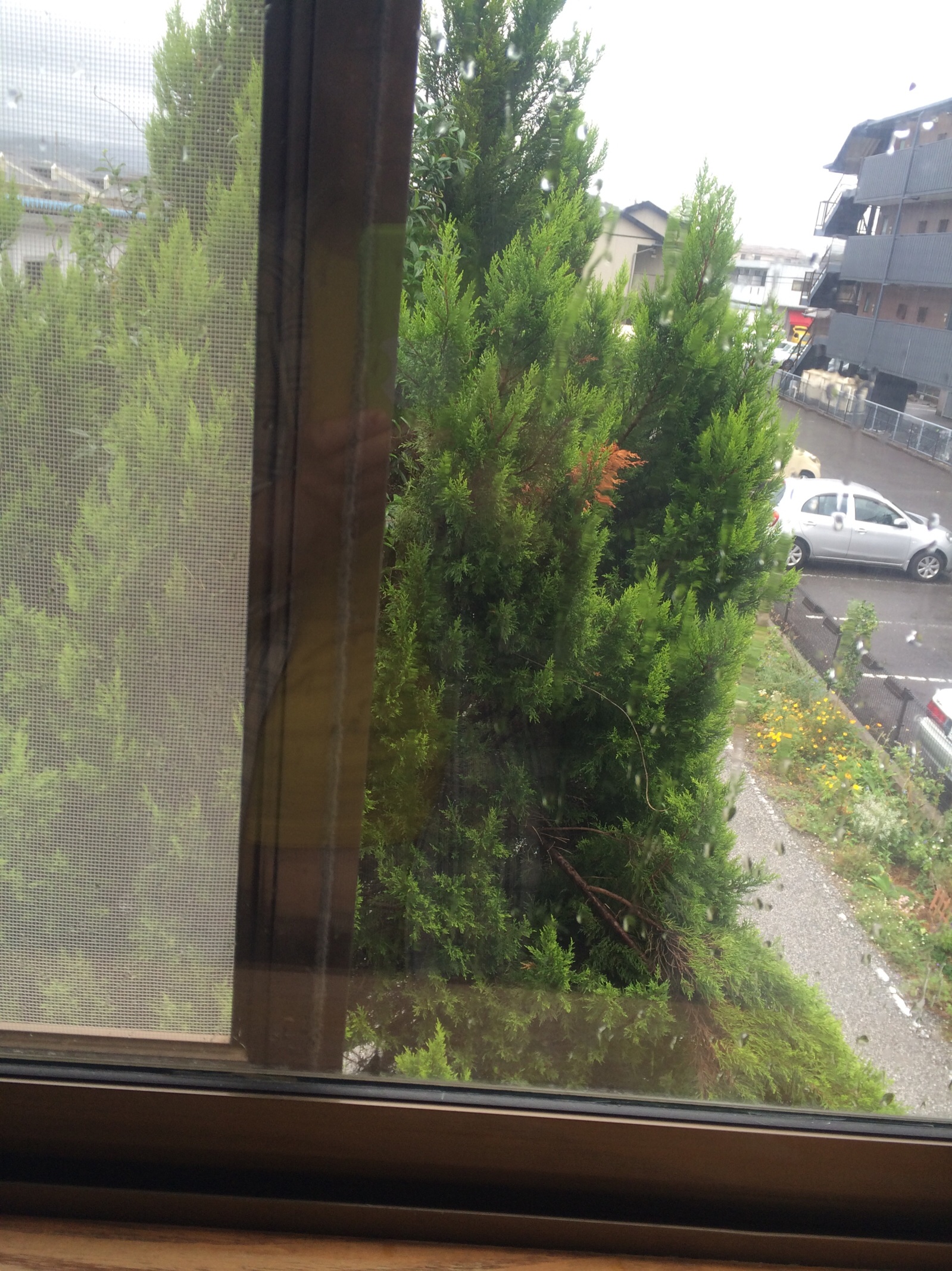 低く垂れこめた台風の雲、マラソンランナーのように北に向かって走ってます。諦めないで勢力が弱まるよう祈ります。