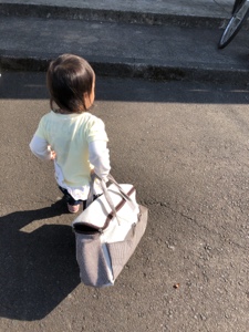 よいしょよいしょとかばんを運んでいます。宮崎 みなみ