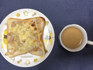 ツナと玉ねぎのチーズトースト食べてホッと一息🙂   2020/4月/30 [木] 17:17