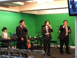 ゴスペルの集い、2番手は、(元学生の)「キブツ」の皆さんです。「輝く光の中で」を、賛美して下さいました!