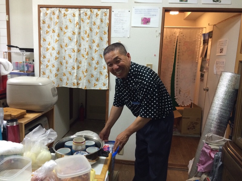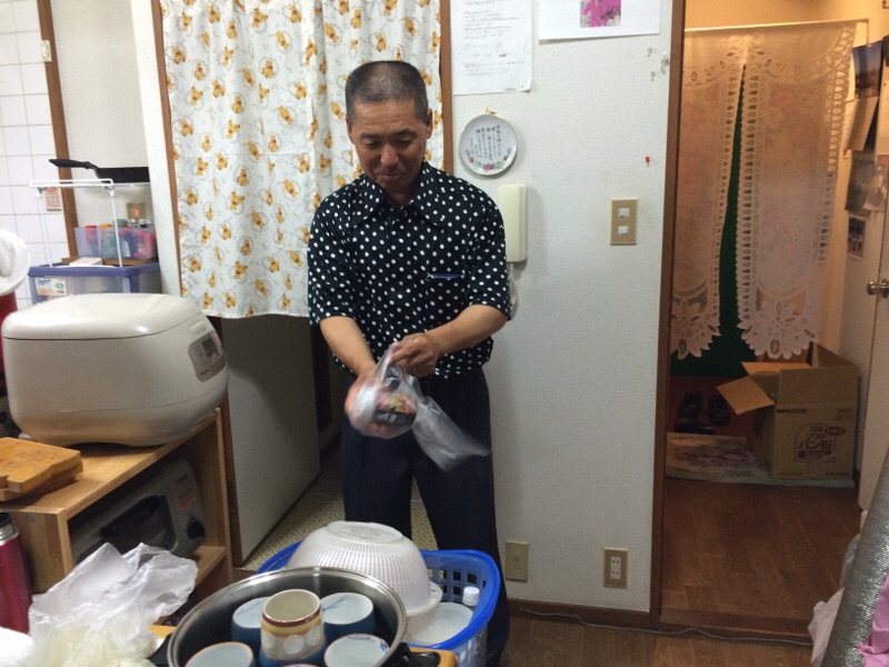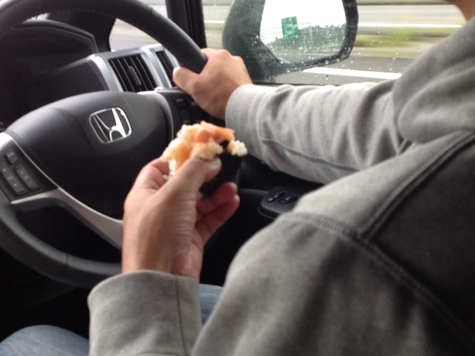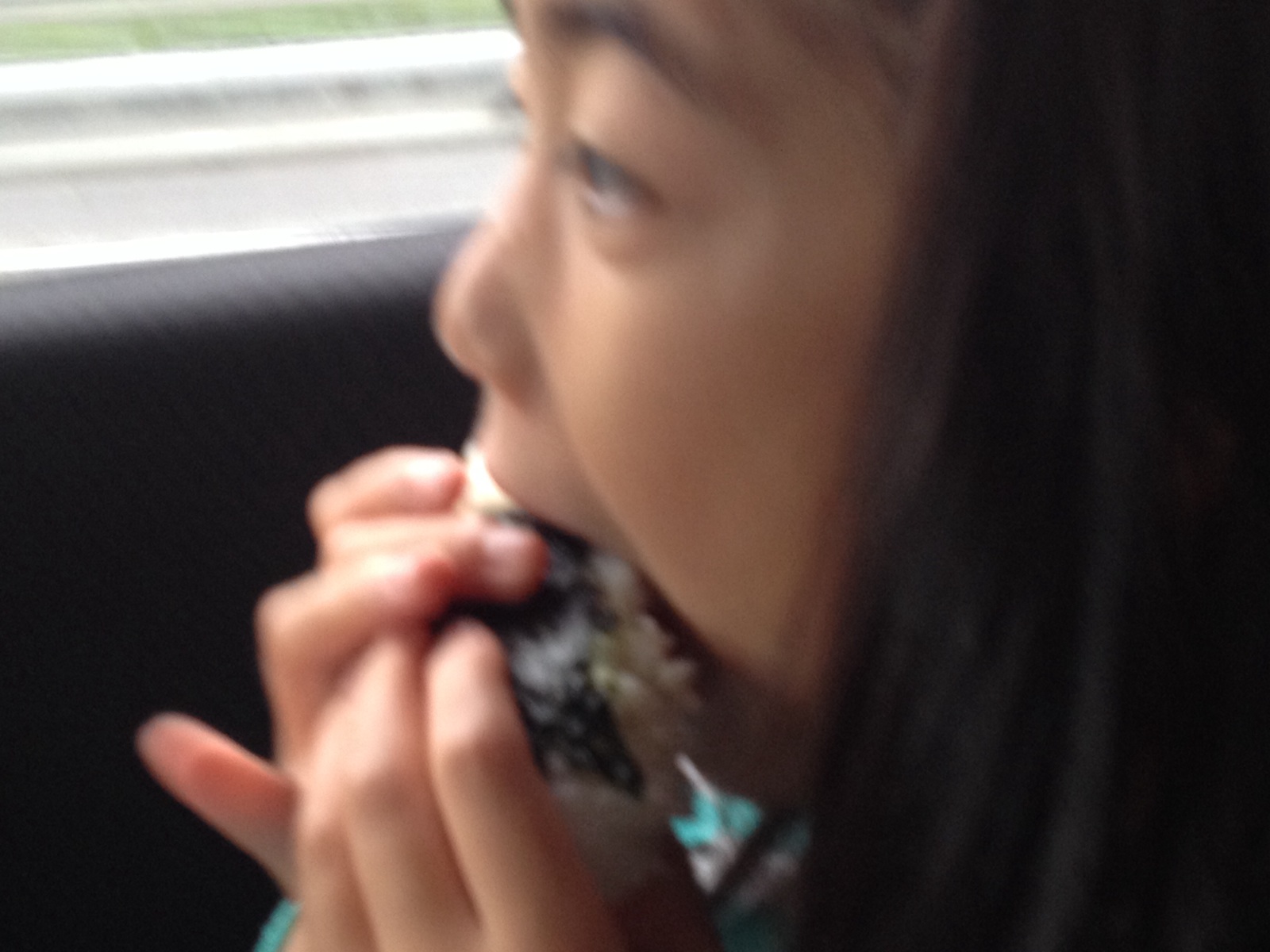朝食のオニギリを食べています。デカオニギリです。 東フィラデルフィヤ教会 シオン