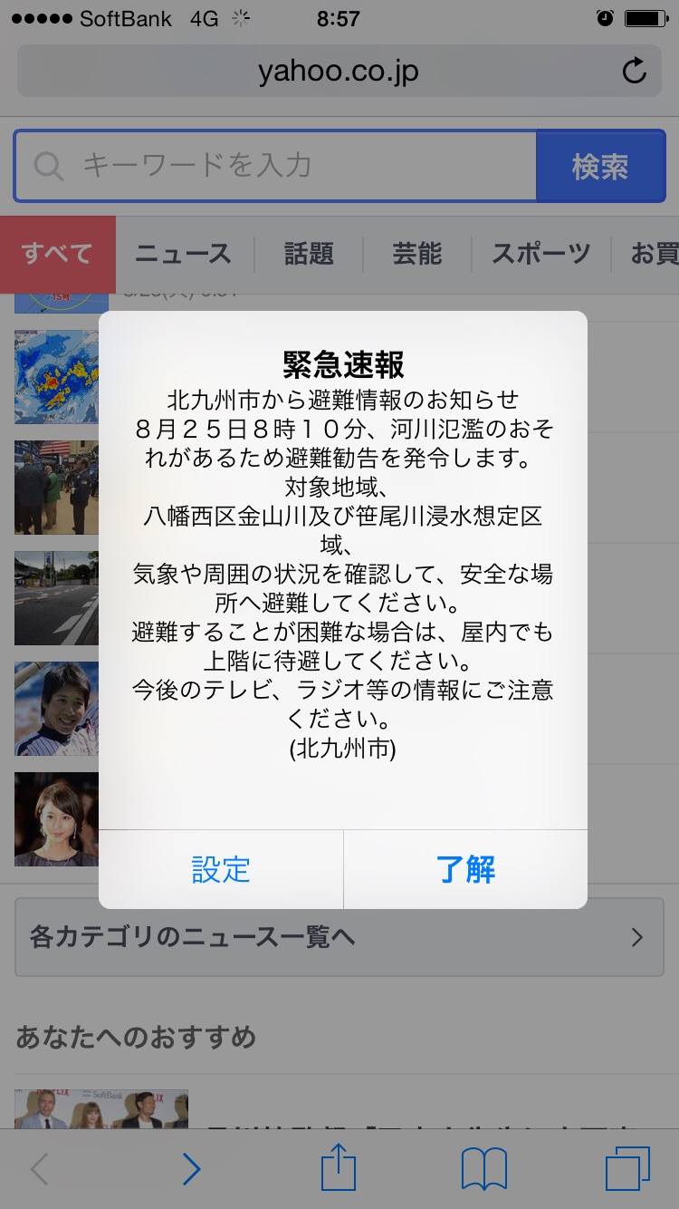 職場にいる先生の携帯から 一斉に警報が鳴りました^^; 北九州 e