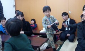 今日の献金を集めるご奉仕担当は、Y君です!