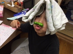 嫌いな野菜を食べる時に鼻をつまんで食べていたら、鼻血が^^;