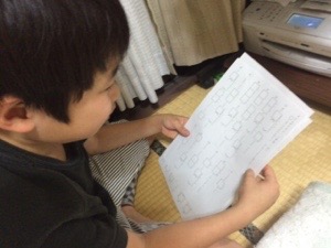 丸つけてます。妹は絵本を自分なりに読んでます。宮崎教会 オレンジ