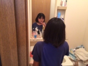 現れた弟! 眠気覚ましにシャワー浴びてきたようです。