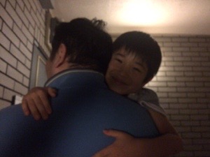 久しぶりにお父さんに抱っこしてもらった〜