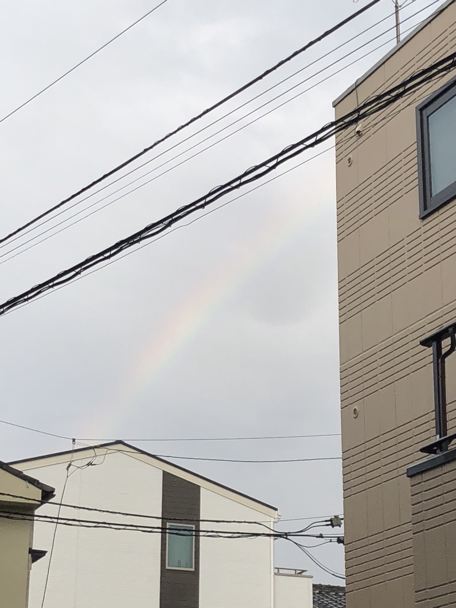 大雨に雷がなっていましたが、今は薄っすらとアーチの虹か出ています。ハレルヤ!