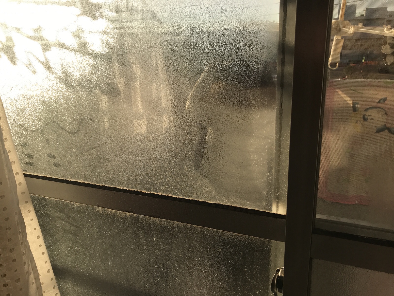 昨日の窓ガラスの凍結が溶け、若干、気温が上がっています。