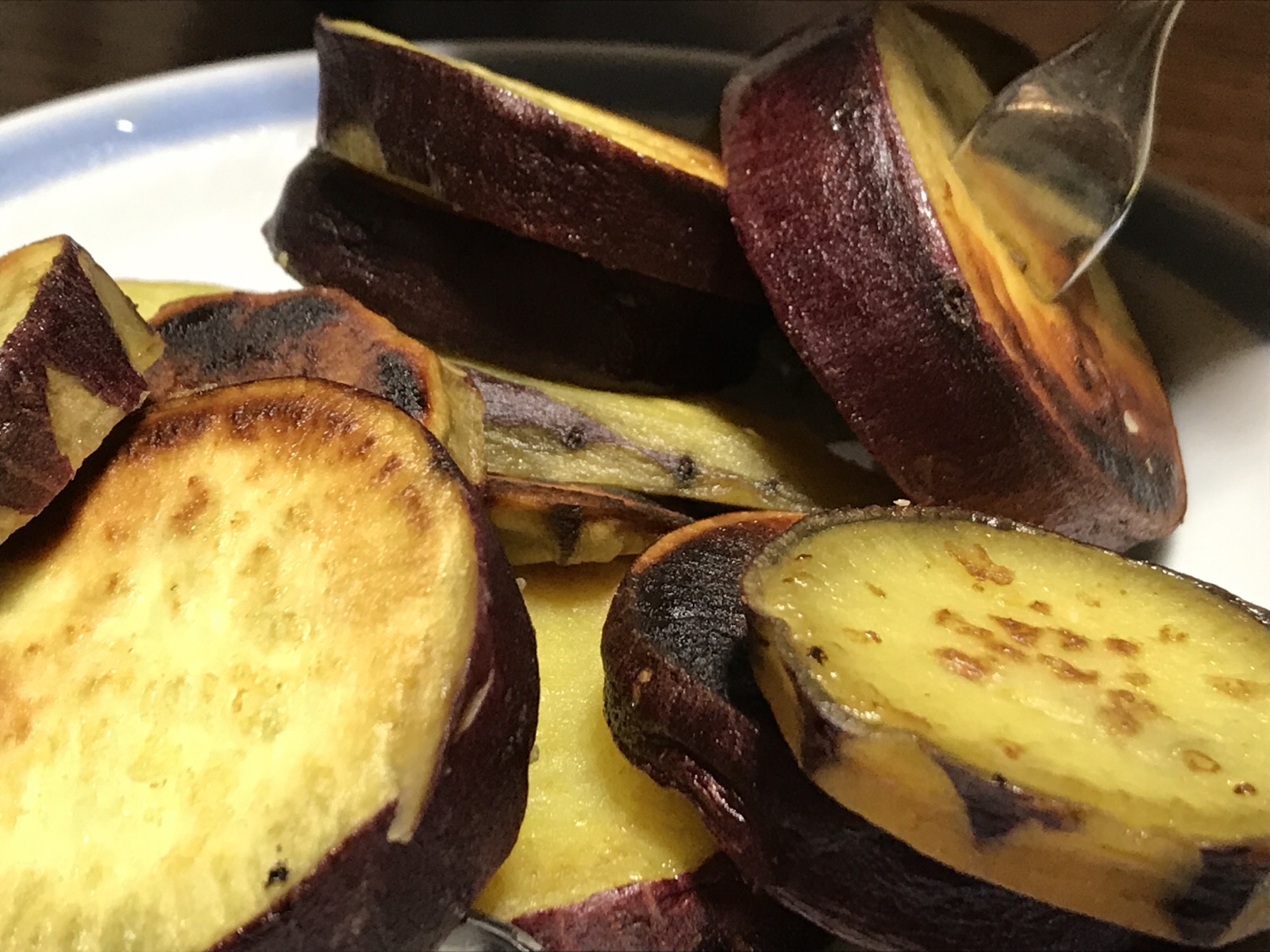 帰りに実家に寄ったら、焼いたお芋!美味しい〜。感謝します!