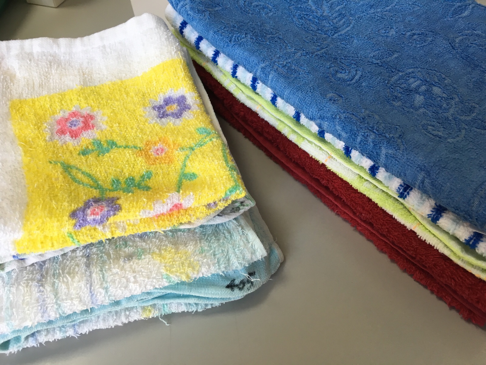 教会のタオルをたたんでます。 よく乾いてる。 Kayano