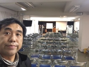 神学校の為、会堂に到着! 準備しまーす。