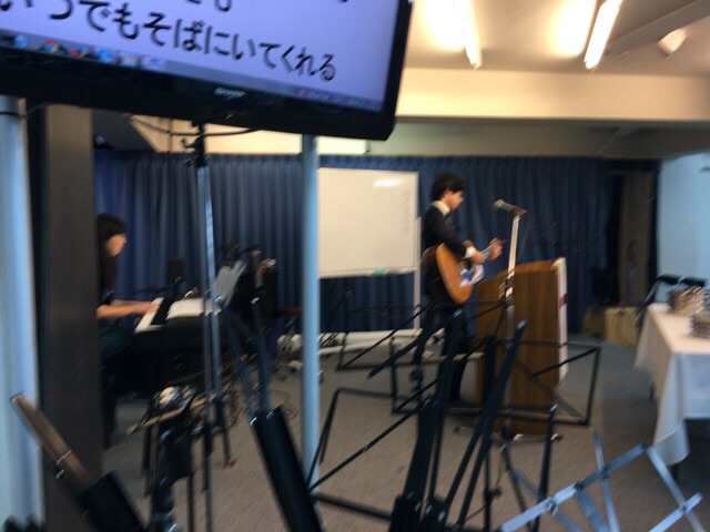 月曜第一礼拝がスタートしました。 賛美リーダーは漆間さんです。