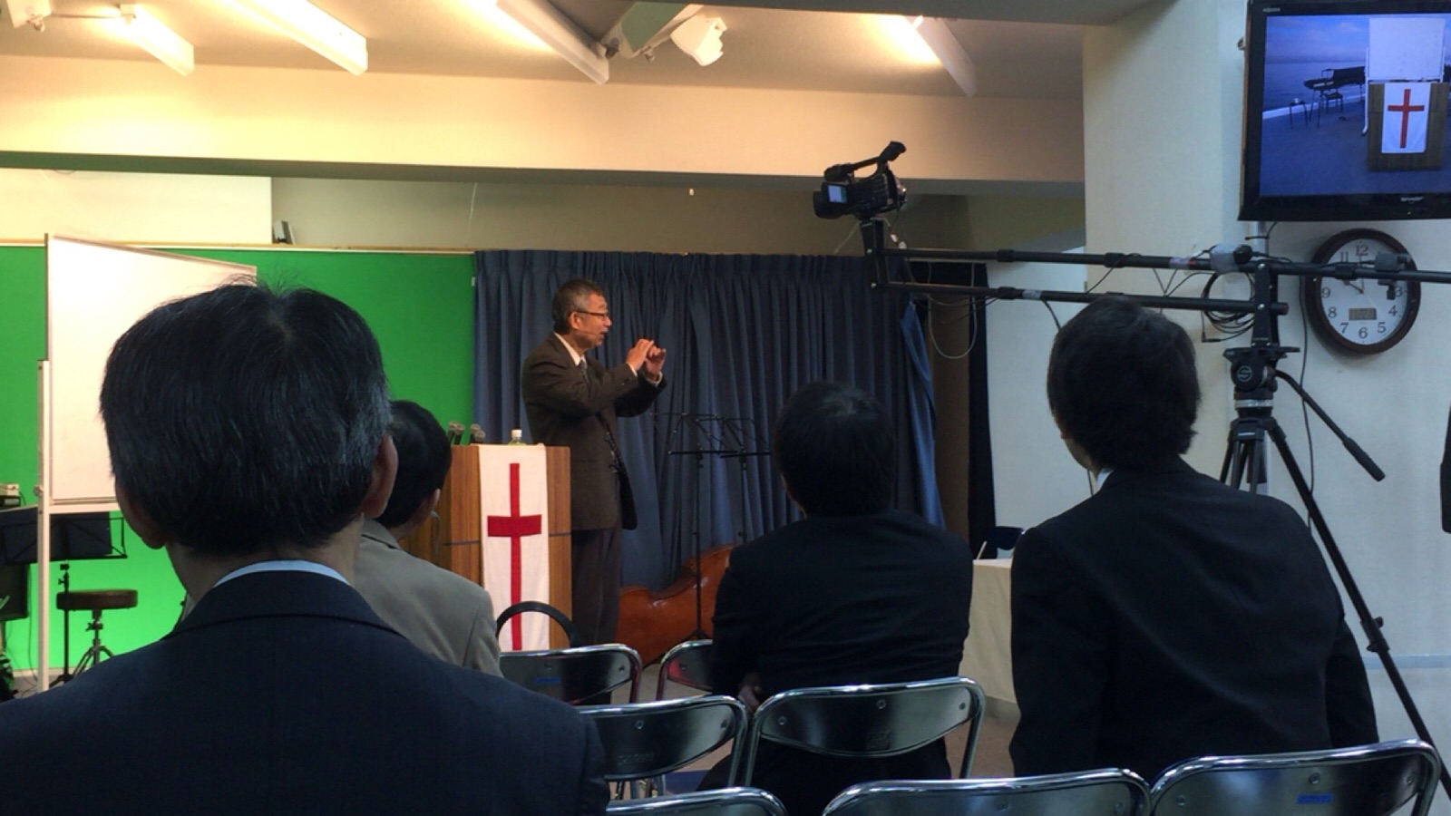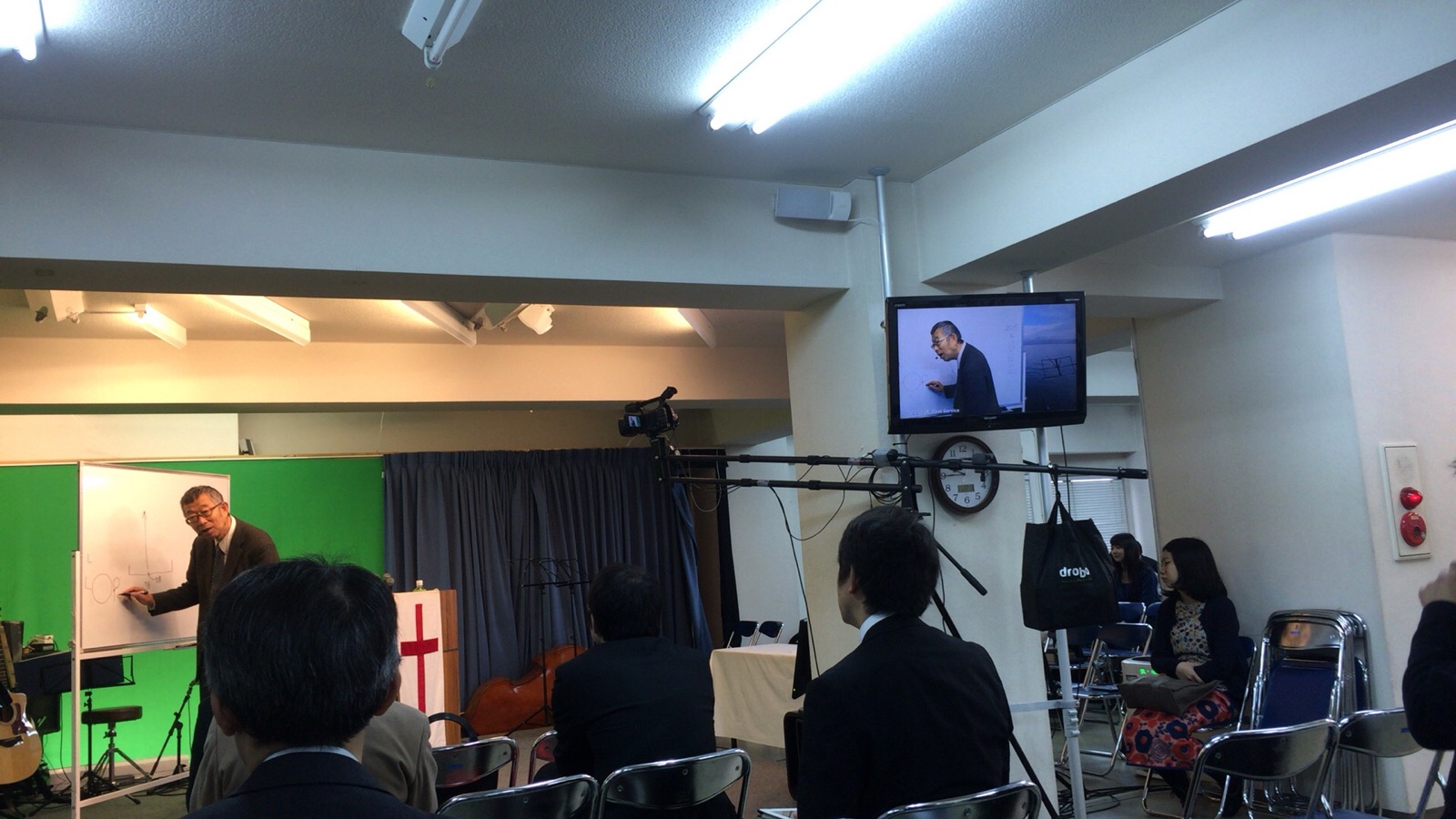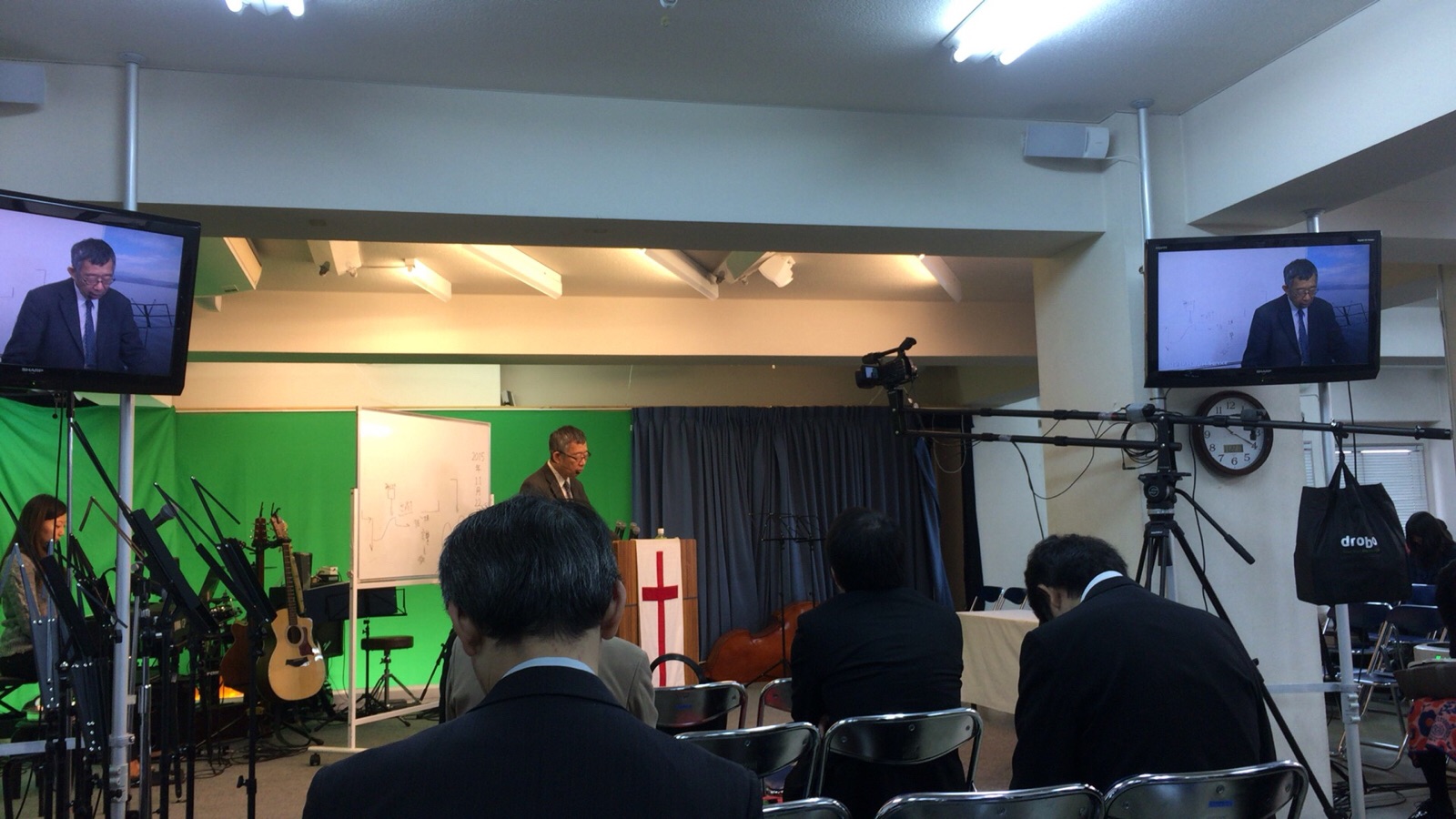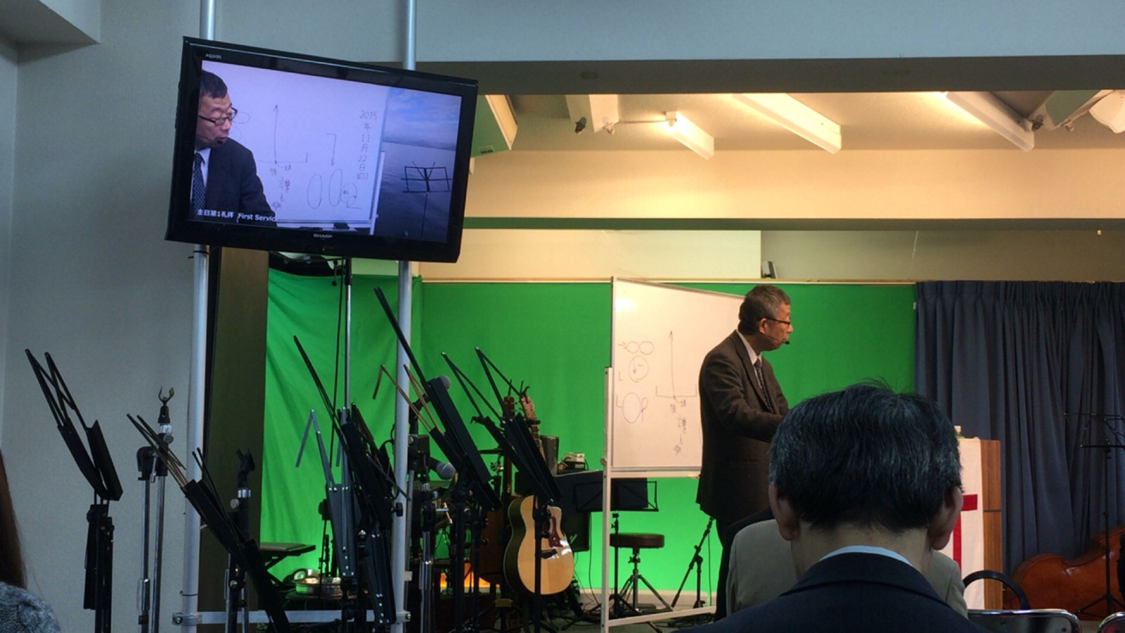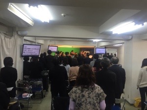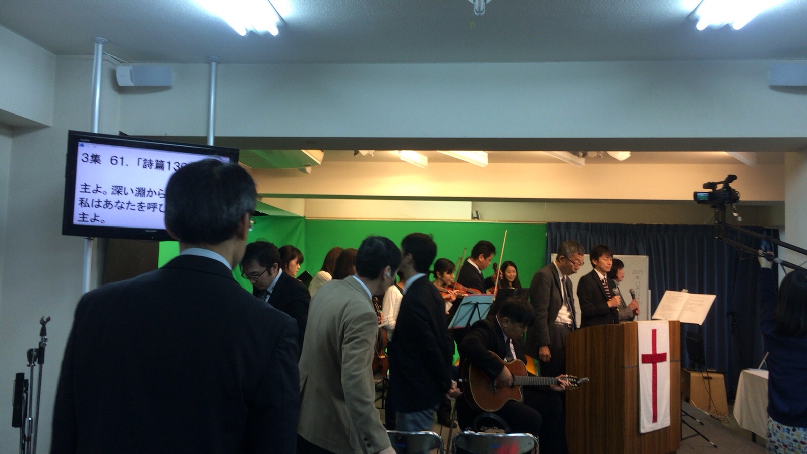 秋元さんが賛美を導きます。 最初の曲は詩篇の歌です。