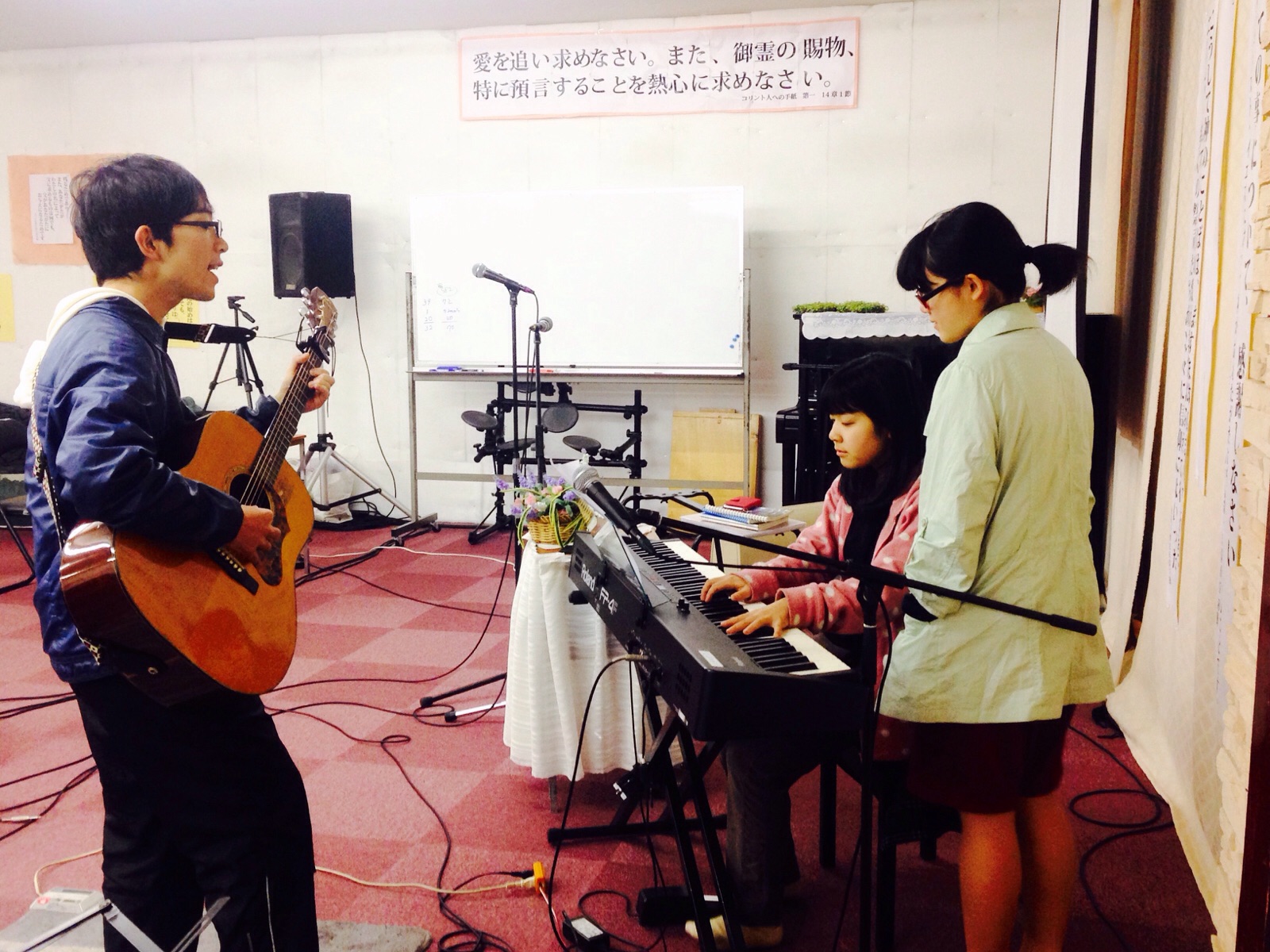 ボイストレーニングの後に賛美の練習をする木原ファミリーの子どもたちです。