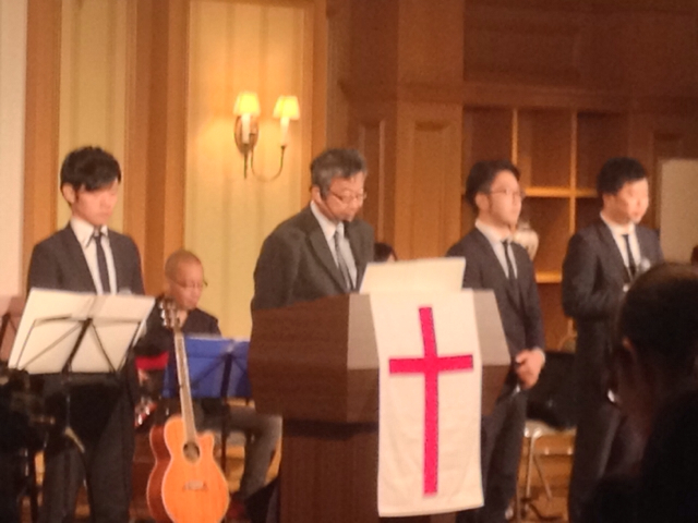 秋元牧師が導かれる賛美の時です。