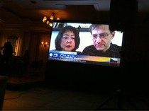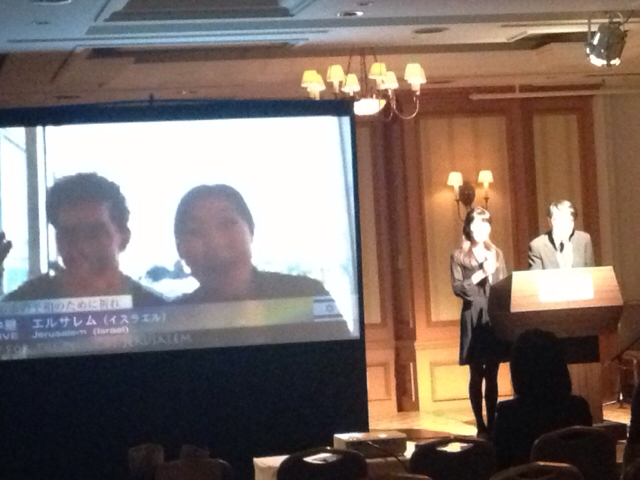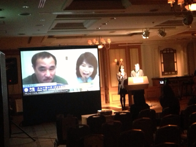 エルサレムの映像が流れ、そのあとはニューヨークとの中継です。ダニエル浅野牧師ご夫妻です。