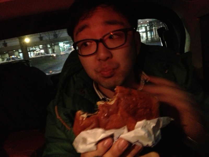 本場佐世保バーガーいただきました!ヨハネくんの顔より大きいか!?