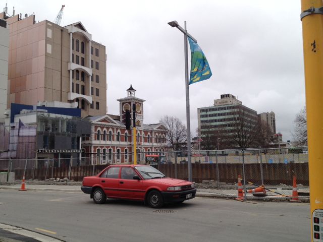 クライストチャーチ。ホテルの隣が、数年前の地震で崩れたところらしいです。