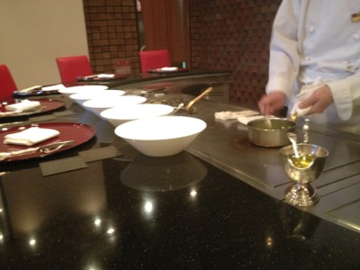 コックさんが目の前で調理して下さっています。