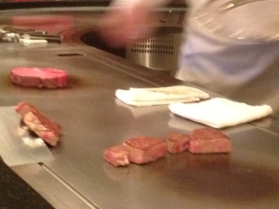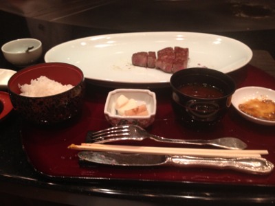お肉です。レアの人、ミデアムの人と、焼き具合を調整して下さいました。