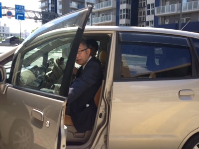 パウロ秋元牧師をお迎えに。待ち合わせ時間、ぎりぎりセーフ!