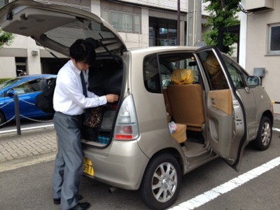 荷物を積んで、これからパウロ秋元牧師の所へ向かいます。