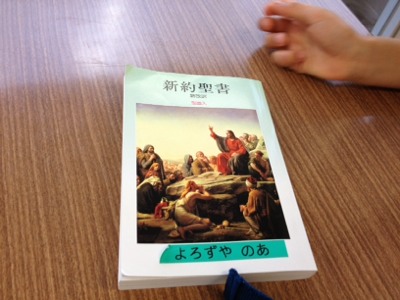 幼稚園で新訳聖書をいただいて、嬉しそう!