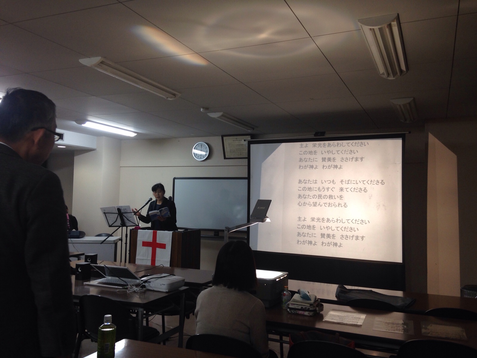 ♪栄光をあらわしたまえ〜を賛美しています。