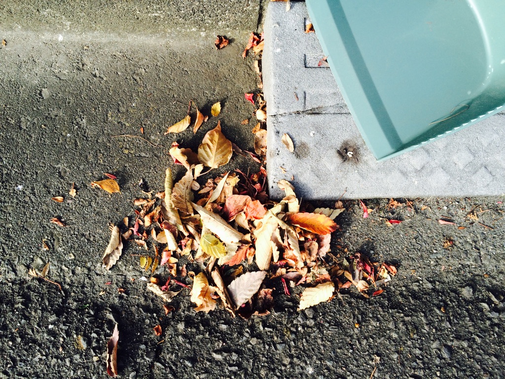 仙台の気温は低めですが、穏やかな天気です。紅葉も最終段階で、落ち葉を集めています。
