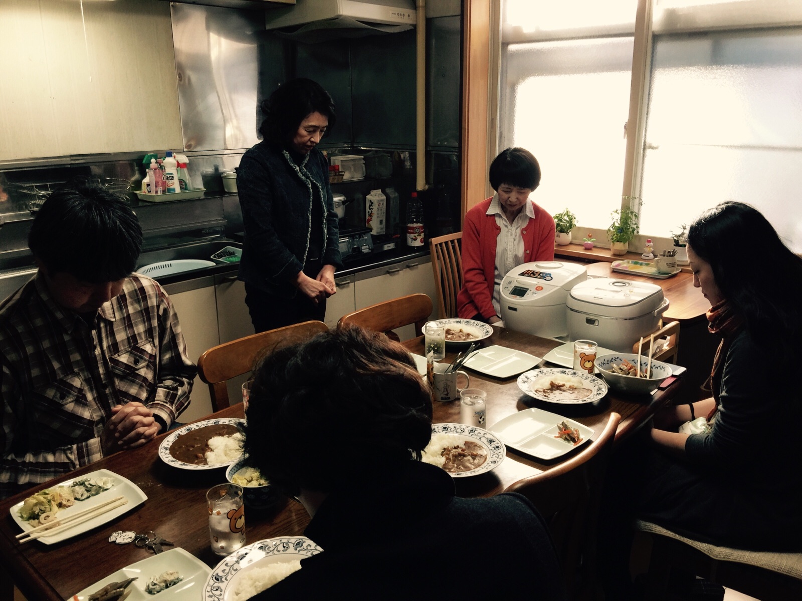食前のお祈り。 聖なる神の都エルサレム教会(弘前)