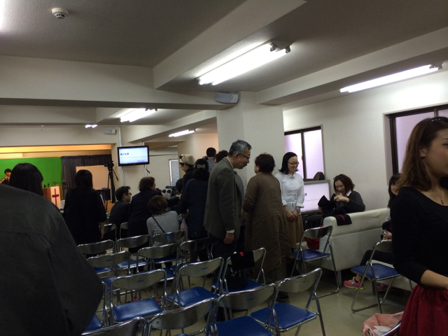 礼拝が終わって、あちらは聖書勉強会、手前は東北聖会用プロジェクターの準備をしています。 柏 H