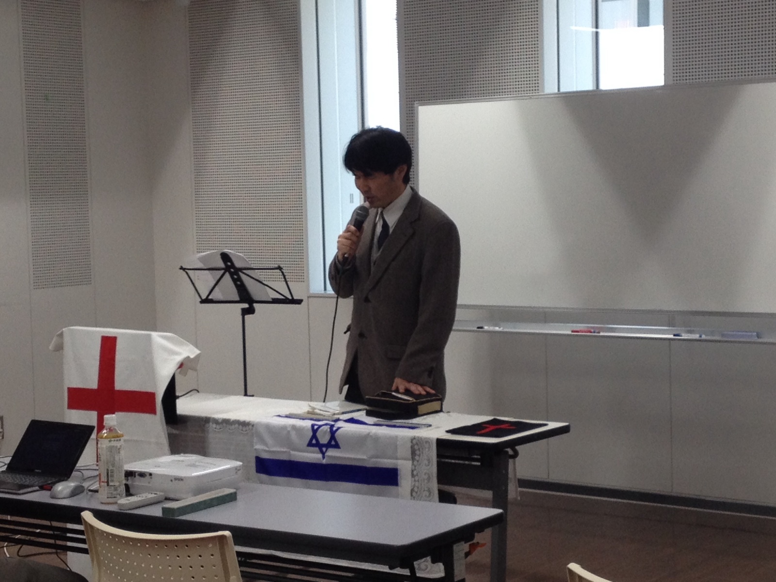 回転寿司から仙台の聖会会場に着きました。 Kobayashi