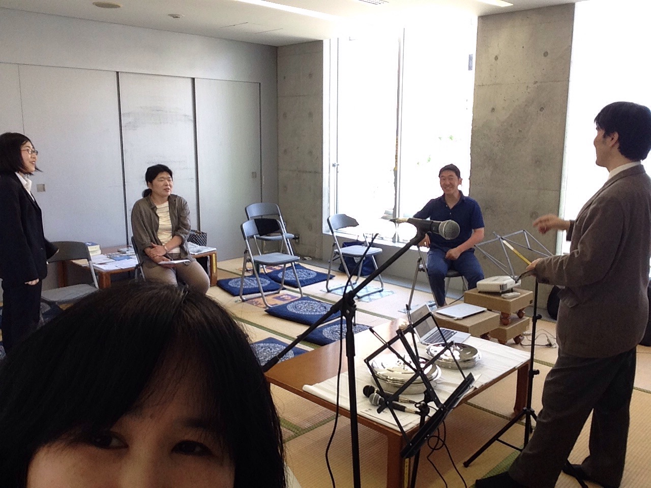 賛美のリハしている、真栄城さんと。