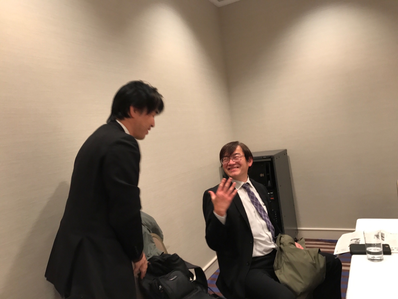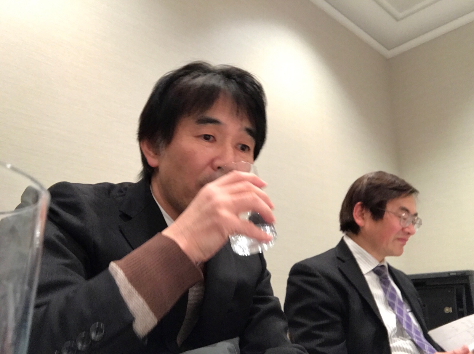 いやいやどうもどうも。窪田さんのお水を間違えて飲んでごめん、ごめん。