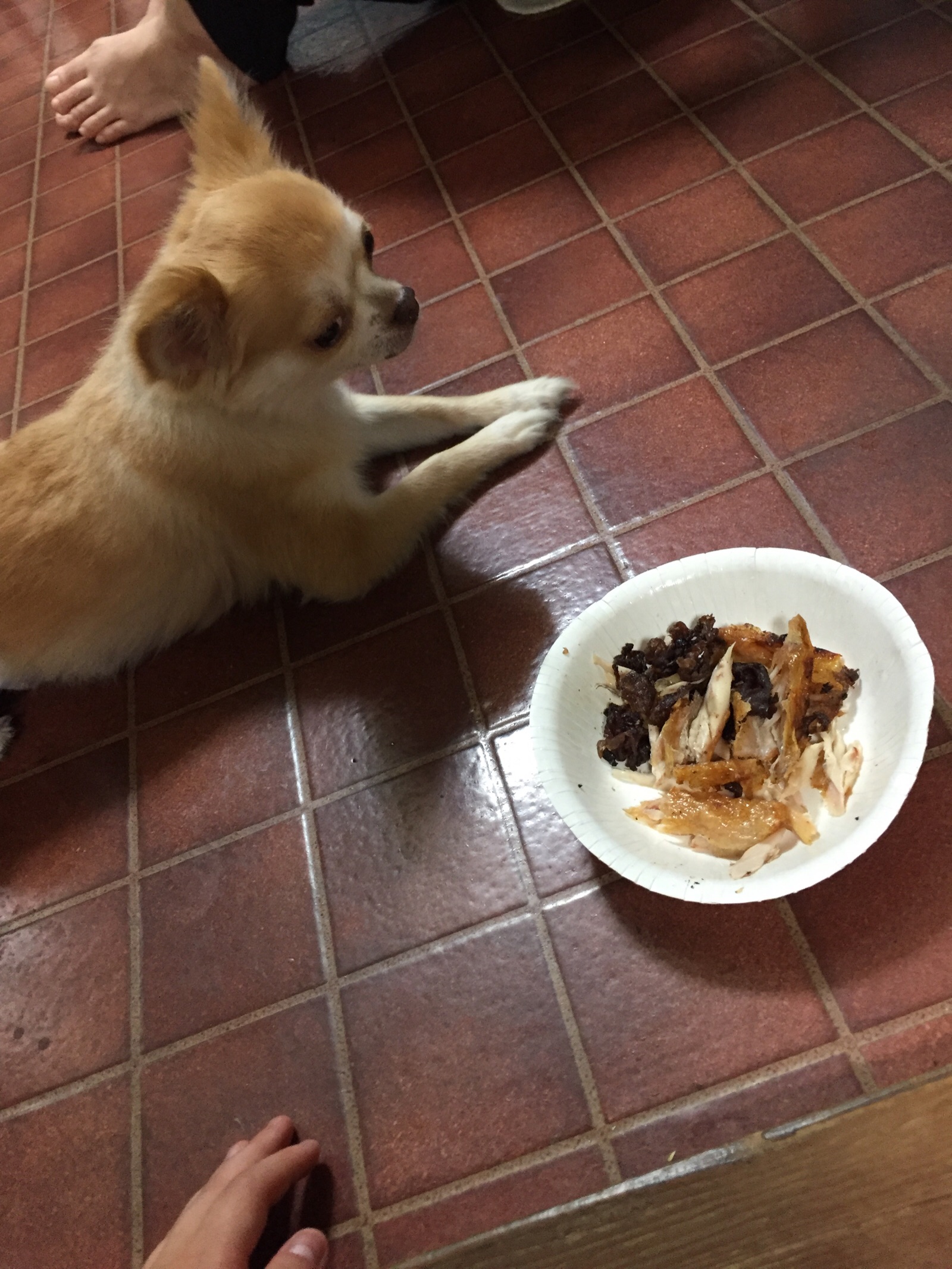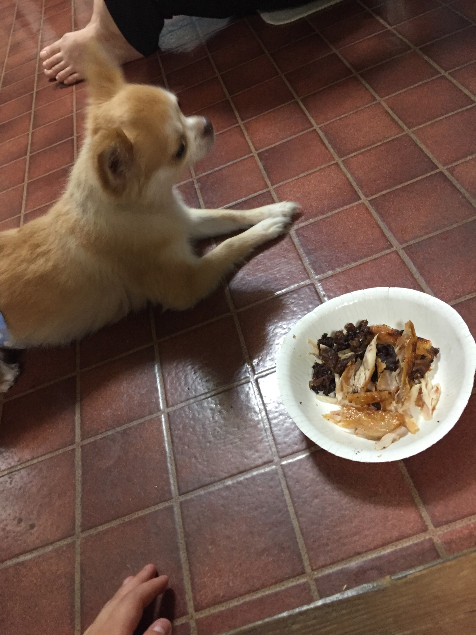 焼肉の残りがビクのごちそう(∩´∀`∩)