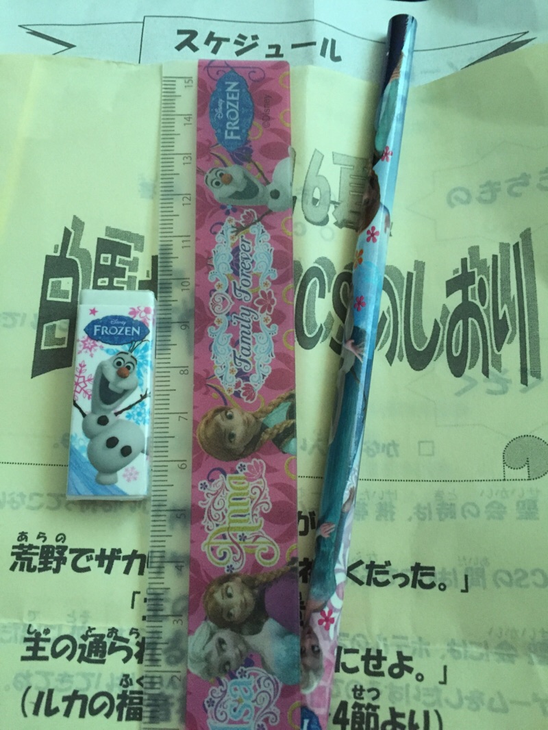 白馬で頂いた文房具を使って、宿題をがんばりたいみたいです。