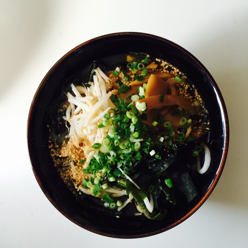韓国ラーメンを買って見ました。野菜&わかめ&メンマを入れて