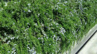温かい日差しのなか、学校の植込みでローズマリーが大繁茂!