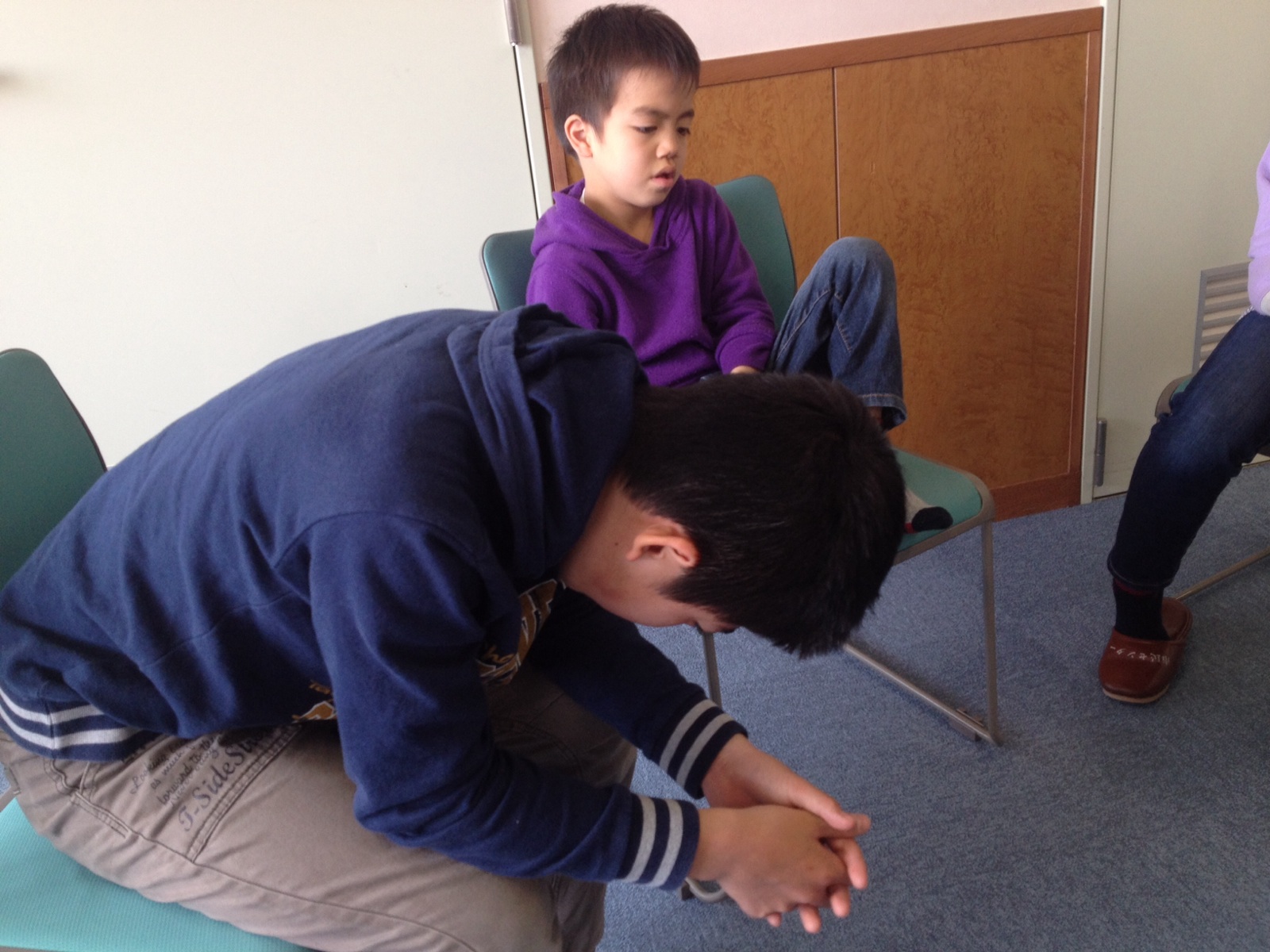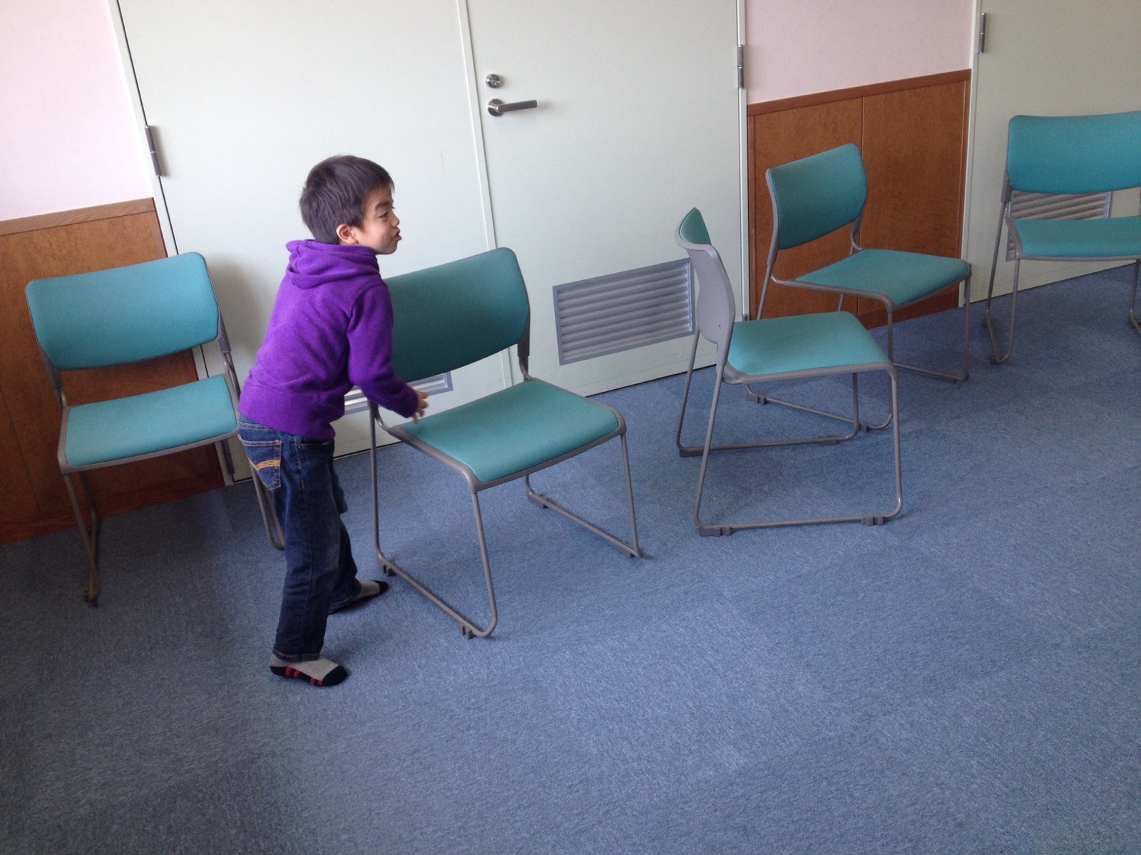子ども賛美祈祷会のために人数分のイスを準備してくれているノア君!ありがとう!