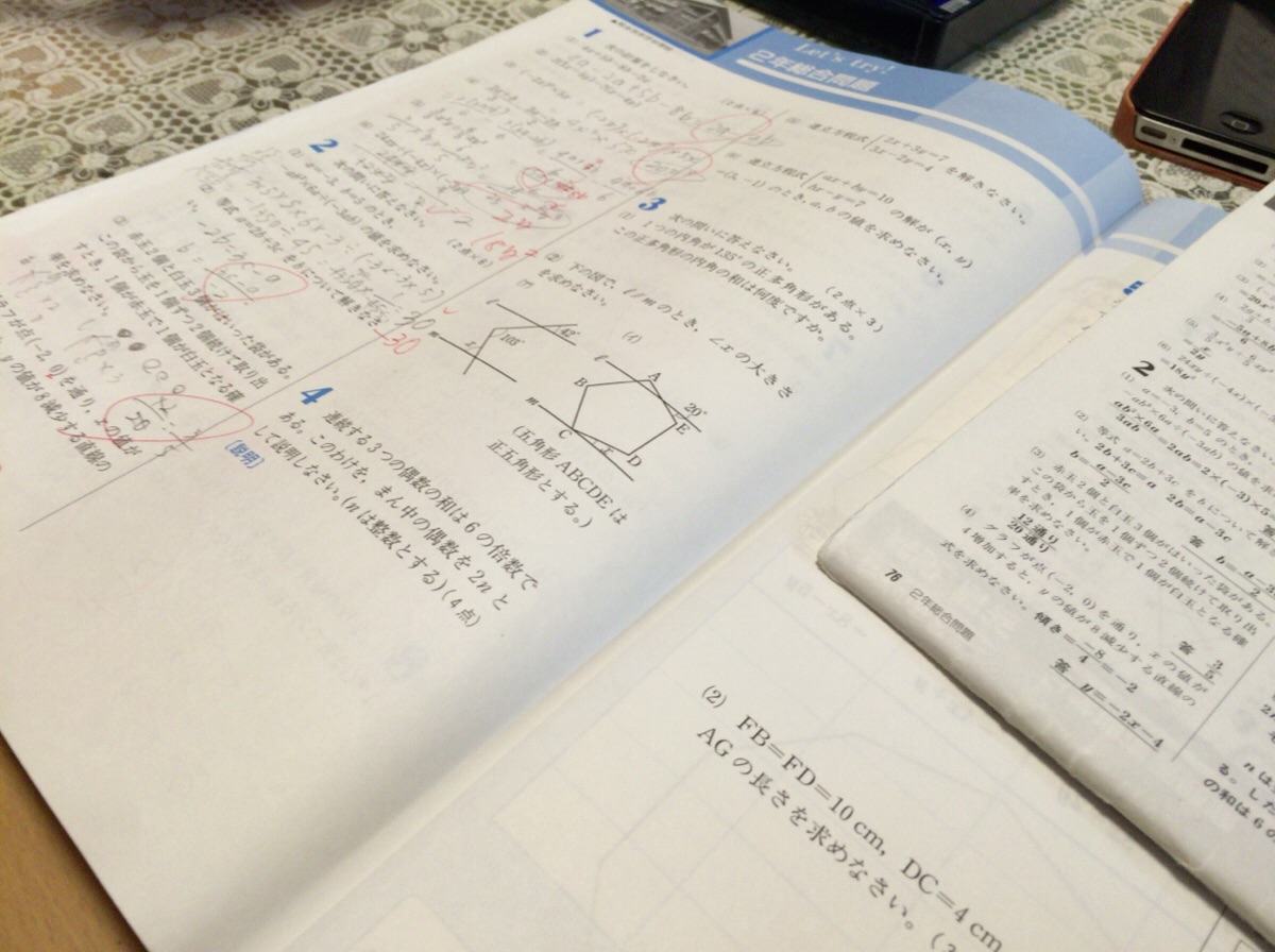 娘が数学の宿題をしています。したくなさそうにして、スマホをいじり始めました(≧∇≦)