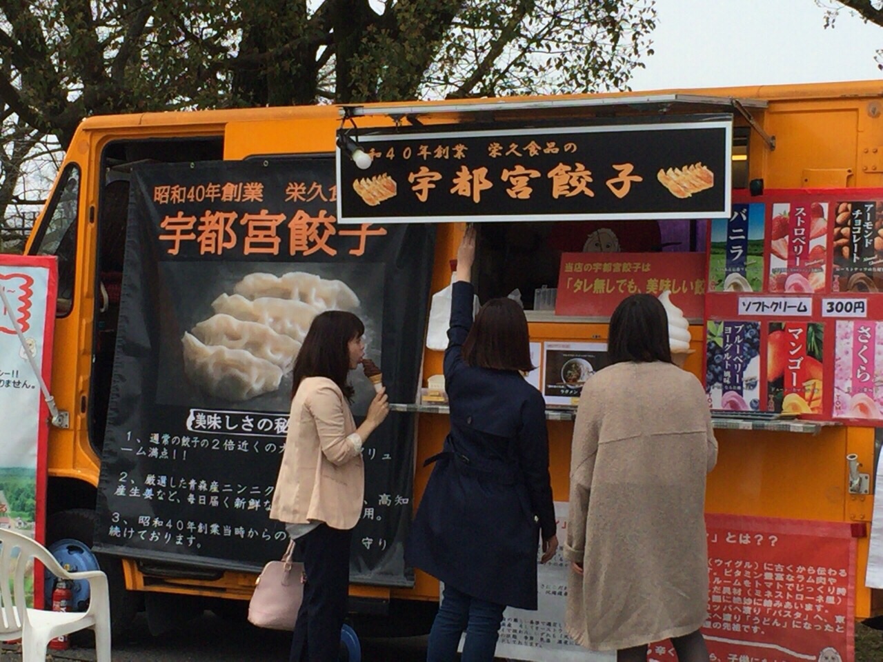 火曜礼拝の後、桜の名所が近くなので見に行ったら人でいっぱい!やっぱり春休み!あら、宇都宮餃子が進出してる!