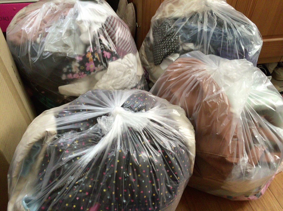 娘の部屋の洋服やバッグを片付けたら、捨てるものがゴミ袋4つ分も出ました!スッキリしました〜