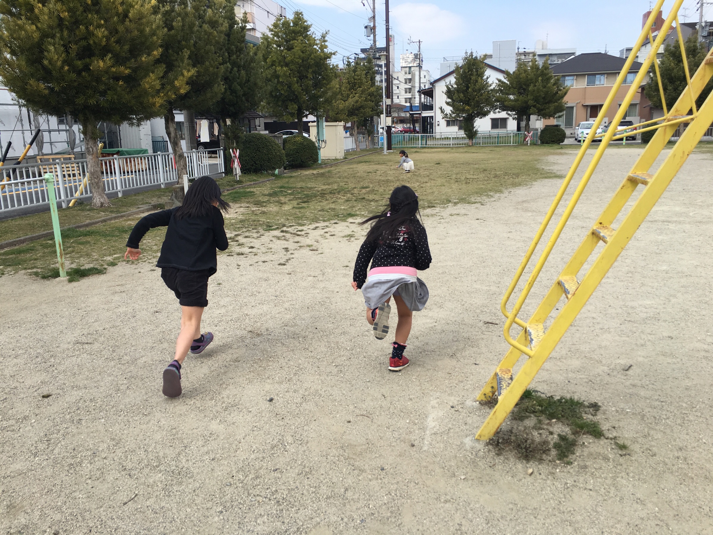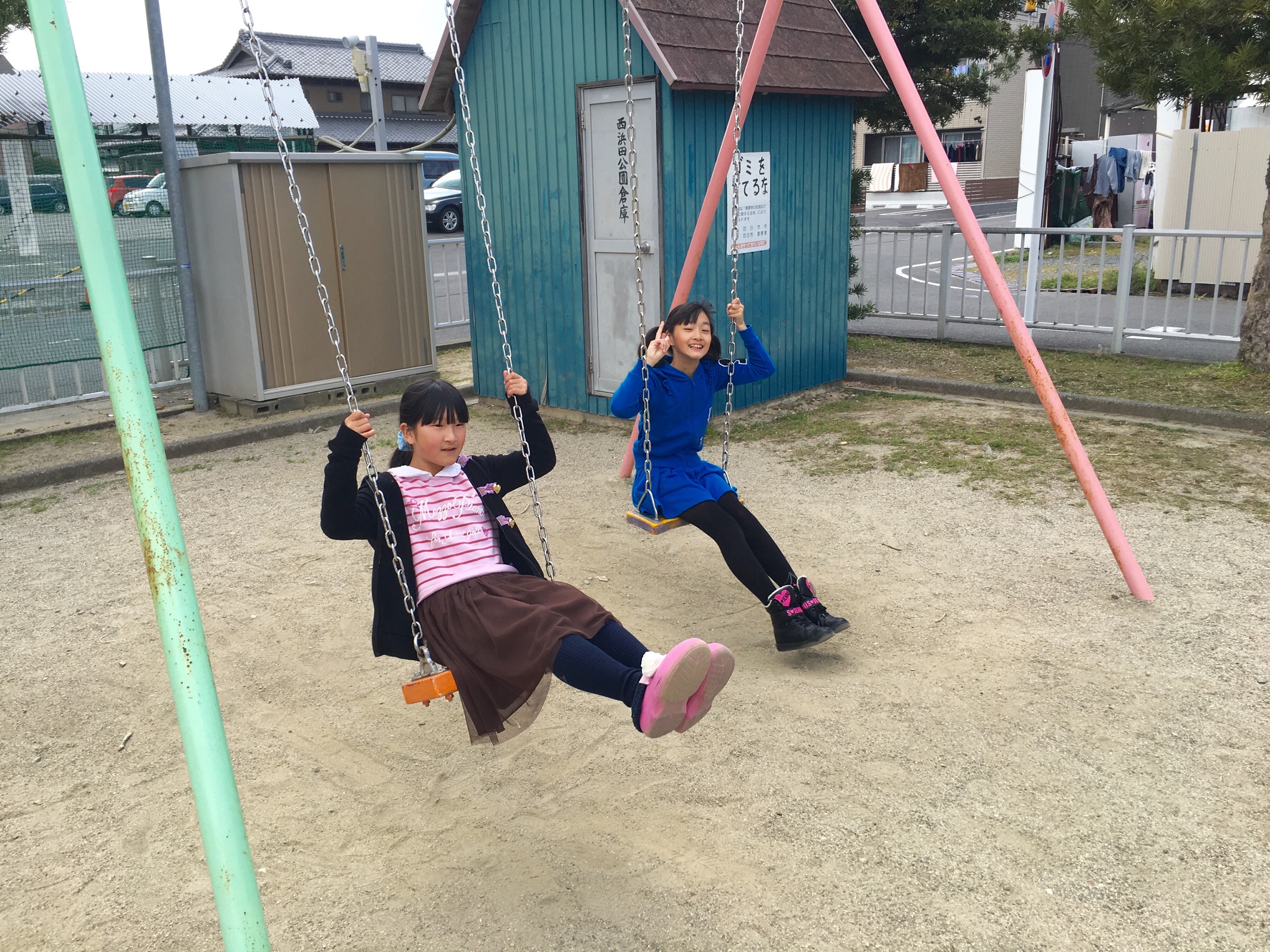 子ども達と公園に来ました!さっそくブランコや駆けっこして楽しんでます♪